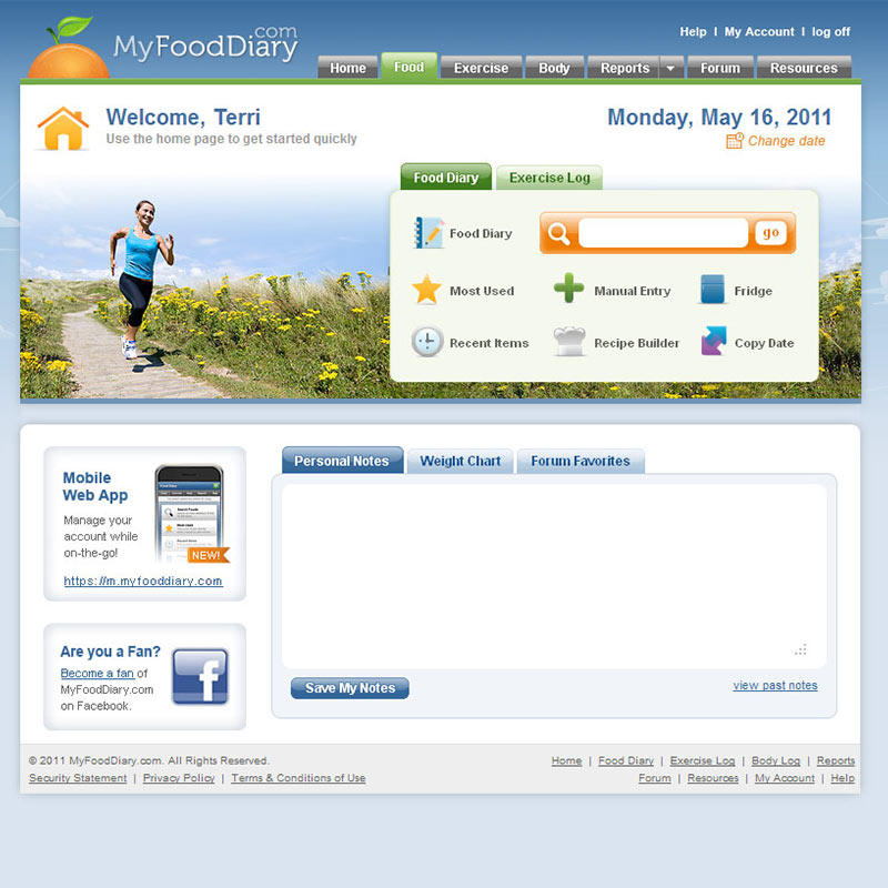 Responsible for maintaining the brand, UX/UI design, integration in ASP.NET, HTML/CSS, along with the creation of digital marketing materials for the 30,000 Member, online diet and exercise tracker, MyFoodDiary.com.